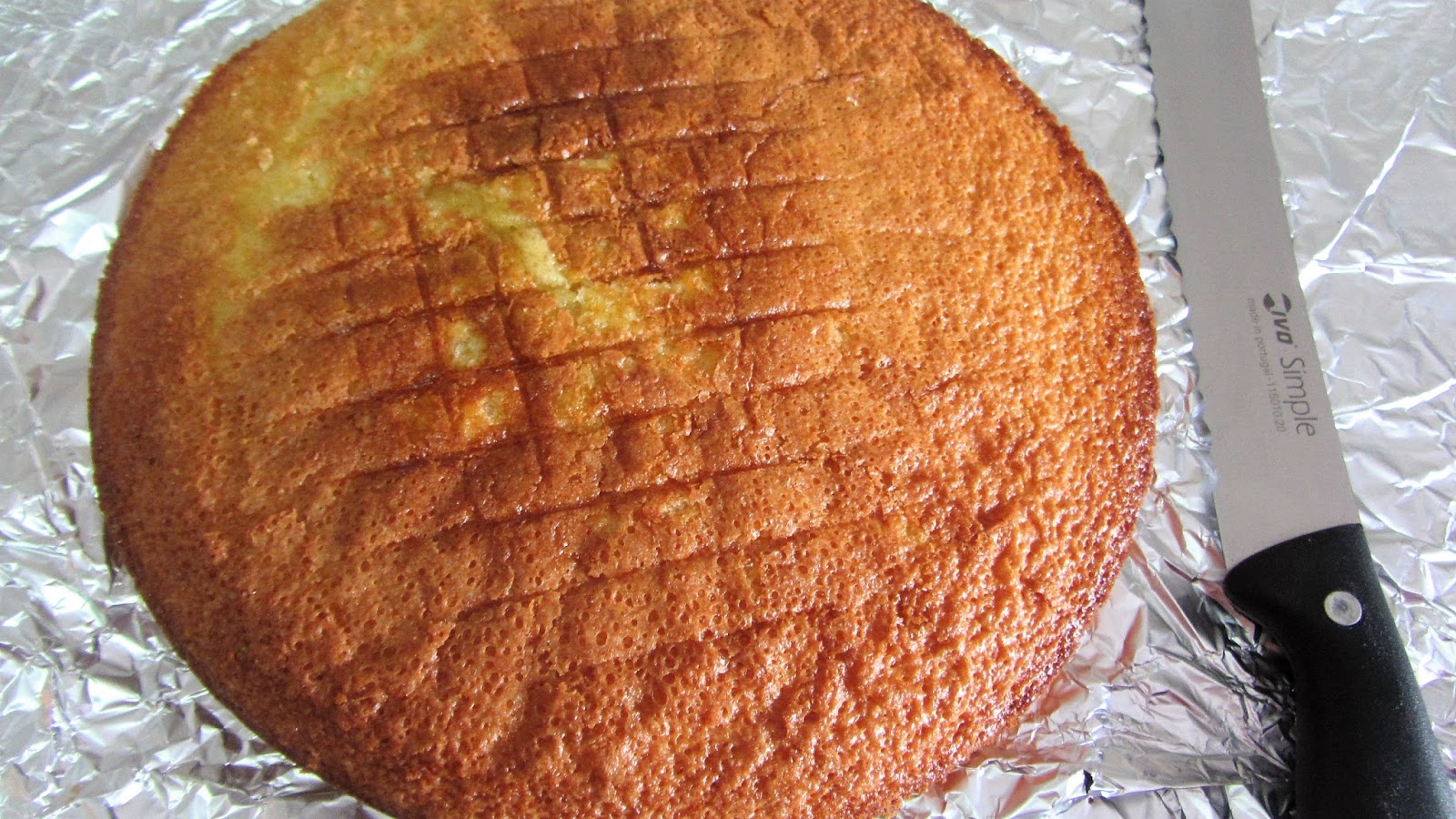 Desta vez aromatizei a base com raspas de laranja. Como era um bolo de festa cozi em duas formas e juntei doce de ovos que aromatizei com canela e laranja.