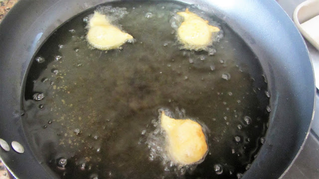 Colocamos então o óleo a aquecer e vamos fritando colheradas de massa.