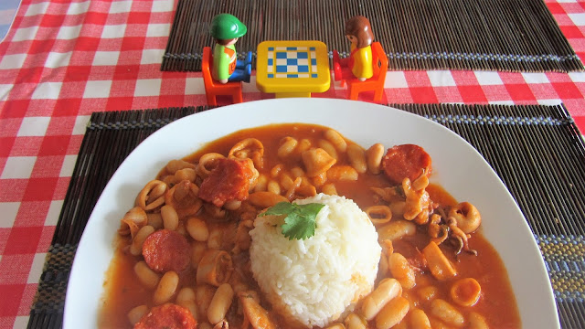 Resolveu experimentar fazer feijoada de lulas. Escrevi a receita e com a ajuda da CC saiu uma maravilhosa feijoada. Ficou mesmo boa.