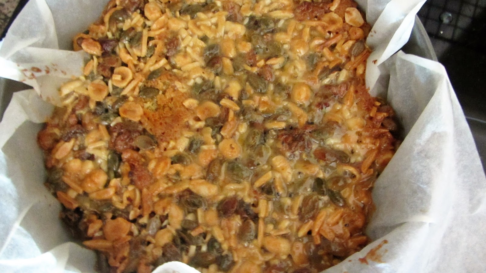 Estava agora a pensar que nome dar a esta receita. Na verdade chamei de tarte de frutos secos mas também leva sementes de abóbora na cobertura, mas não me ocorre neste momento outro nome para lhe dar.