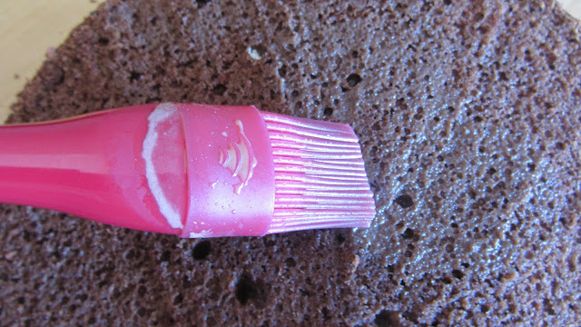Pincelam com a calda a outra metade do bolo e colocam por cima do recheio.