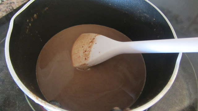 Levam ao lume até que o chocolate se dissolva totalmente no leite e retiram.